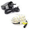It comes with 2m of our 7.2W single colour LED tape, and a 240V power adapter that plugs straight into your mains.
